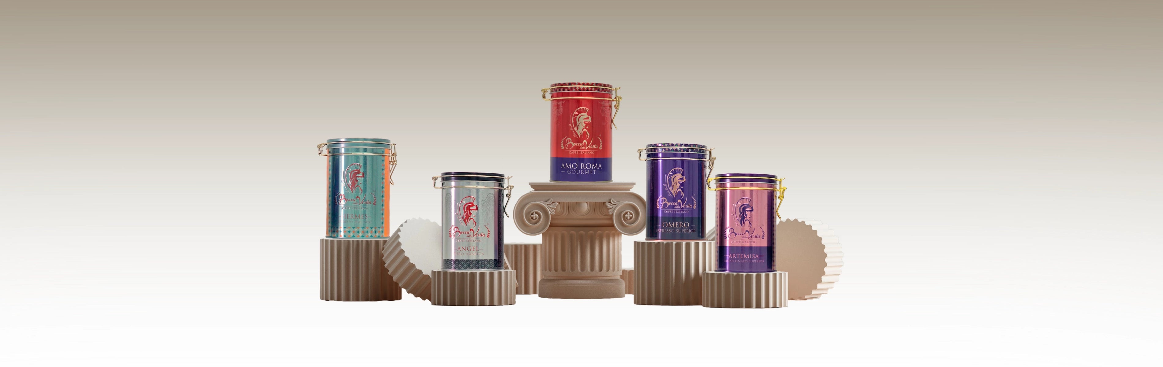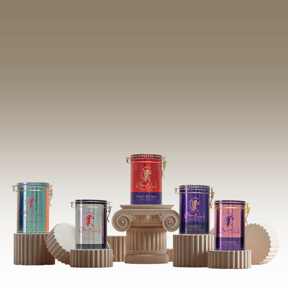 passando per l'eleganza di Angel Puro Arabica, il mistero di Omero Espresso e la nobiltà di Amo Roma, ti trasporta nel cuore dell'Italia ad ogni sorso.